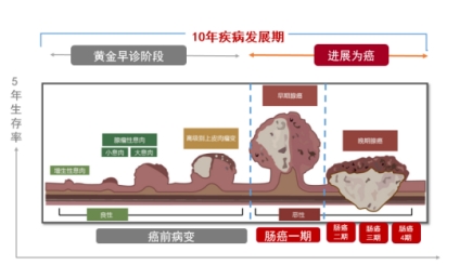 在这个漫长的过程中,您都可以通过筛查,早发现,早治疗,治愈率可以高达100%,但是晚期患者的5年生存率仅有10%。